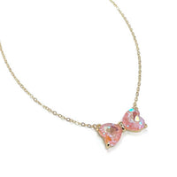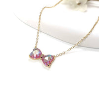 Add some sparkle and fun to your outfit with our Bow Shape Heart Glass Necklace! The iridescent glass heart pendant is sure to catch eyes and hearts alike. Perfect for lovers of all things quirky and unique. Dress it up or down, this necklace is versatile and fun!